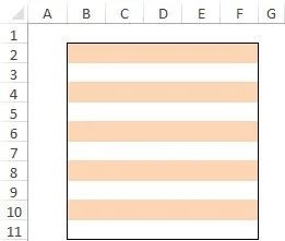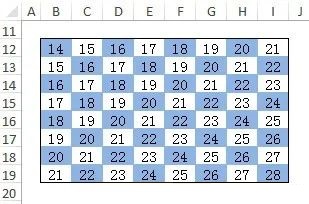 上面的示例每隔一行/列突出显示。如果要求每隔一个单元格突出显示,如下所示,那么如何编写公式呢?