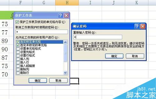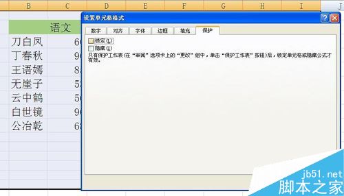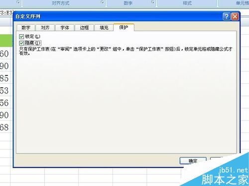 5、快捷键ctrl+1重新进入设置,保护选项中,勾选锁定和隐藏。确定。