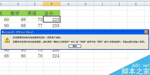 7、进行完以上设置后,可以看到,公式已经被隐藏无法显示,想对其进行修改则跳出警示框,无法修改。