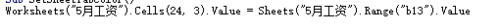 Sheet("5月工资").Range("c22").Value = Sheet("5月工资").Range("b13").Value