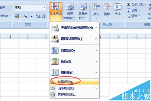 2、在开始选项卡中,找到格式:条件格式,单击条件格式下的新建规则。