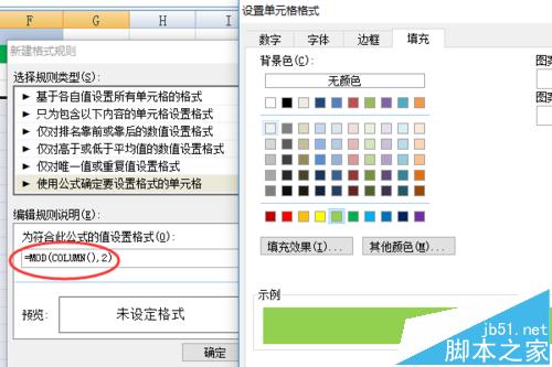 11、同样我们也可以设置隔列显示不同颜色,只要将上面的公式改成=MOD(COLUMN(),2)