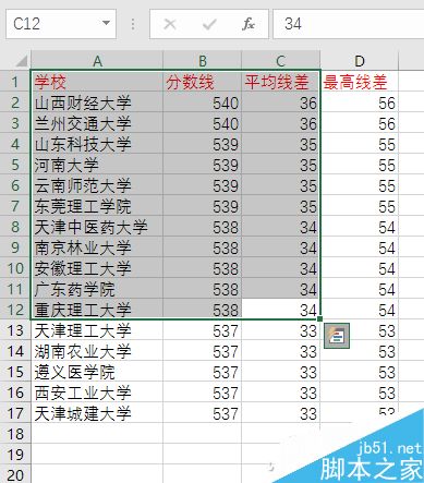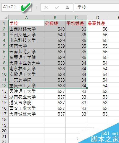 使用表格上方左上角的名称框,输入单元格区域坐标(如输入A1:C12),可快速选择指定的单元格或单元格区域。