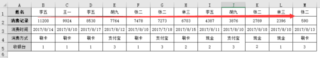 今天,朋友传来一份简化的商场消费记录,问:能不能在不改变表格结构的情况下按行排序?