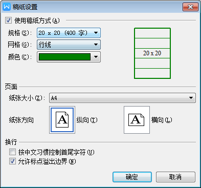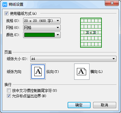 设置稿纸方式 稿纸方式是WPS文字的传统排版方式,符合国内传统撰稿人的需求及使用习惯。 WPS文字提供了10行×20列、15行×20列、20行×20列、20行×25列等四种规格的标准稿纸。选择稿纸方式...