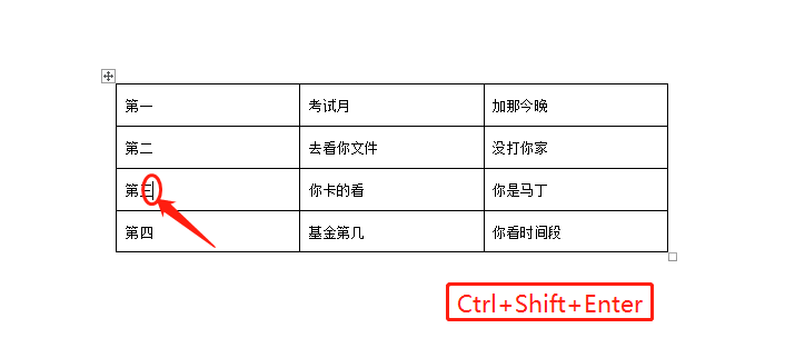 ①将光标放在要拆分的下一行文字后面,按住ctrl+shift+enter