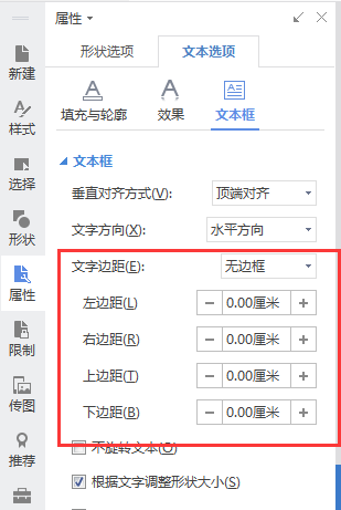 如果需要调整字体大小,您可以选择内容,点击功能区开发--设置字体大小就可以了。 如果需要调整文字边距,您双击艺术字边框,会在右侧有个文本选项,您可以在这里设置。...