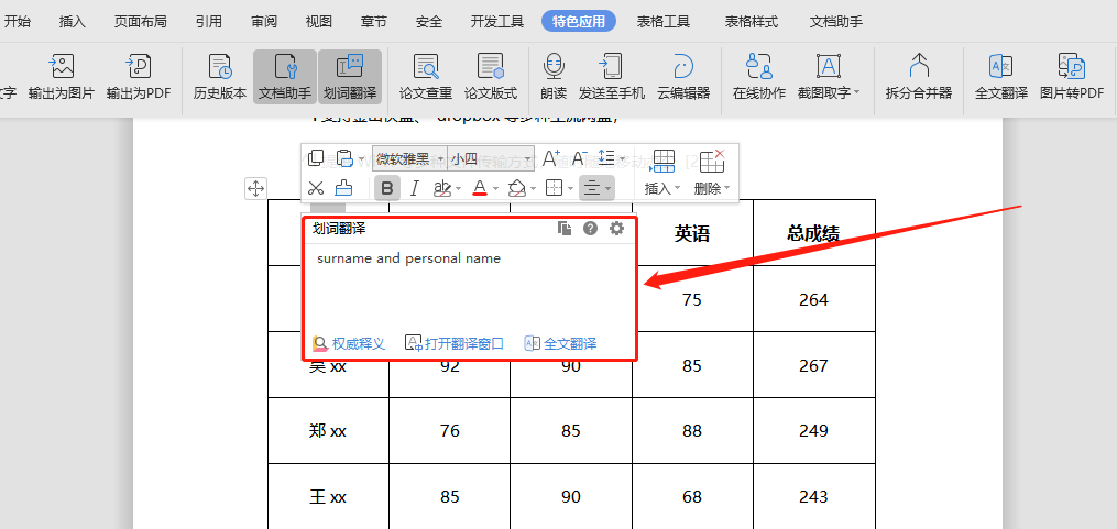 2.选中需要翻译的内容,即可查看到翻译结果。