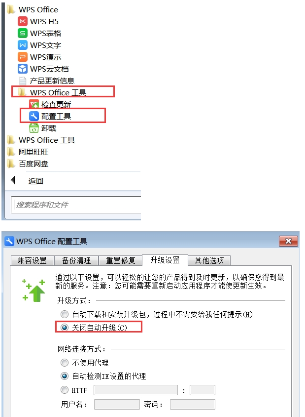 您可以点击电脑左下角开始--所有程序中找到:wps office工具:--配置工具--高级--将自动升级关闭。...