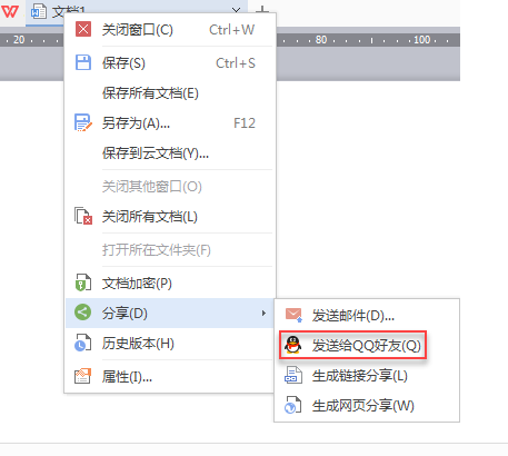 在文件打开的情况下,将鼠标移动到文档标签上,点击右键“分享-发送给QQ好友”即可。...