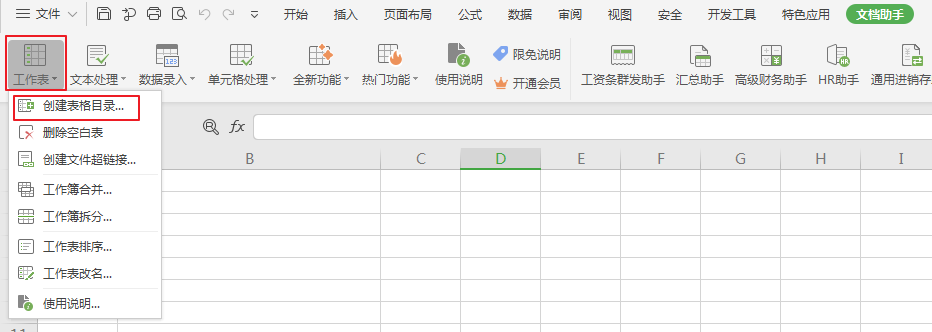 点击文档助手-工作表-创建表格目录即可...