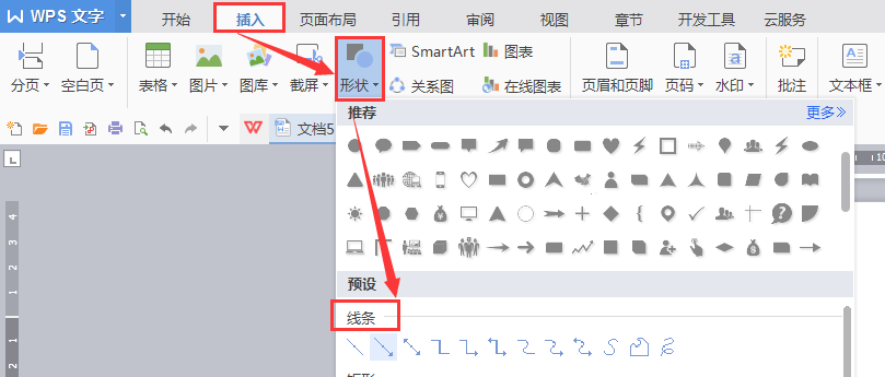 通过点击“插入”---“形状”---“线条”,单击鼠标拖动即可绘制线条,