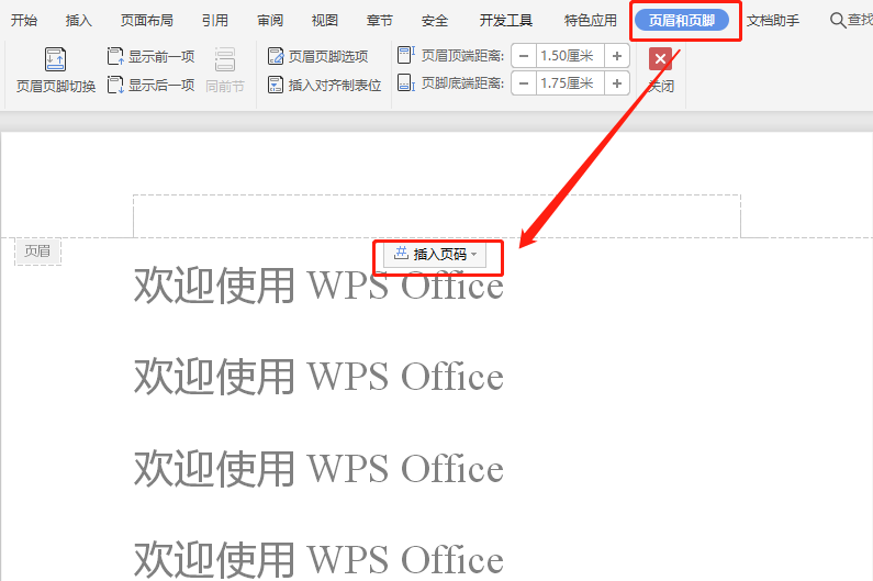 以WPS 2019版为例 1.使用WPS Office打开或新建文档,双击页眉区域,进入到“页眉和页脚”编辑状态,点击“插入 页码”; 2.在弹出框根据需要设置好“样式”、“位置”后,选择应用范围为...
