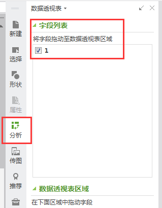 您咨询的字段按钮,是否是创建数据透视表以后,选择字段的字段列表呢? 如果是的话,您创建好数据透视表后,选择到数据透视表,程序的右边会显示数据透视表的工具,可以在“字段列表”中选择需要的字段。...