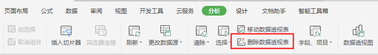 鼠标定位在数据透视表中,点击功能区分析-删除数据透视表。...